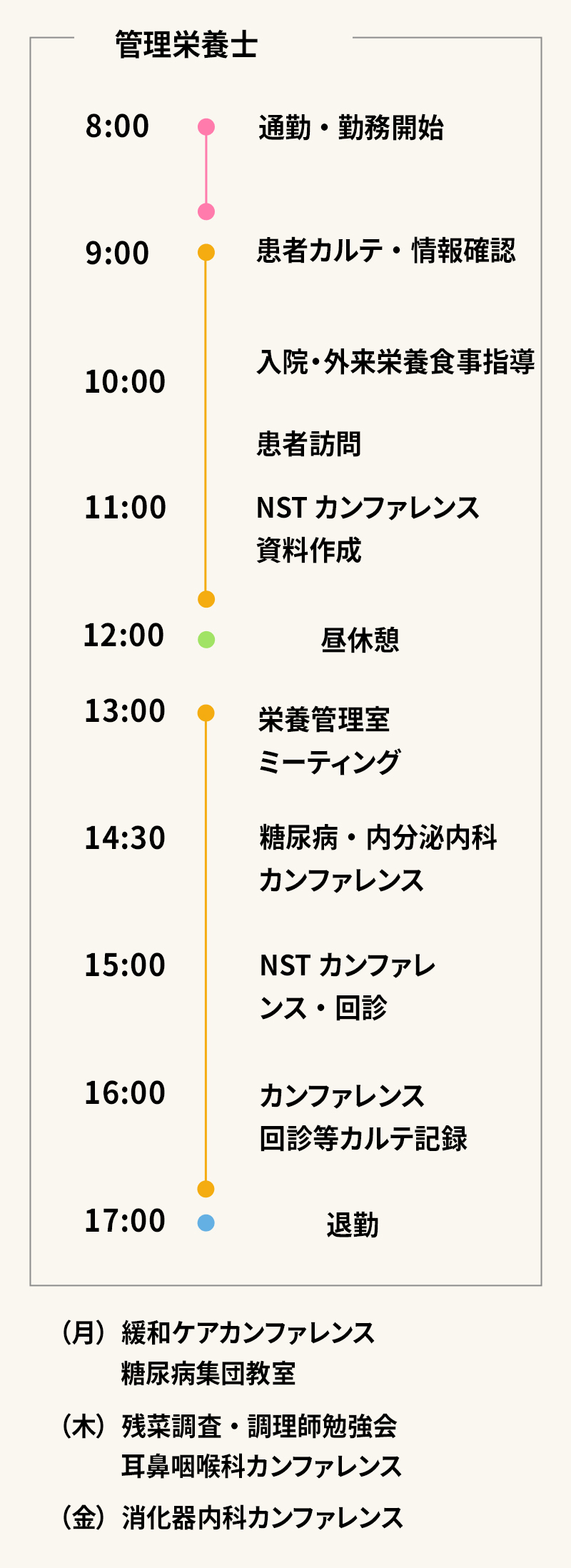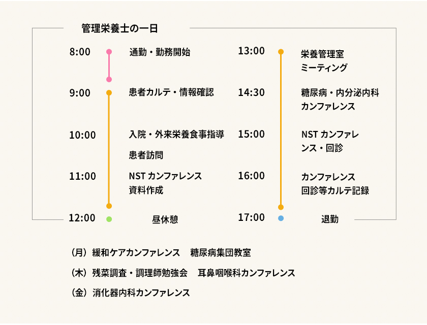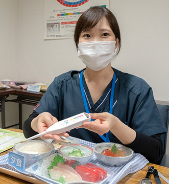 栄養管理室では、「栄養管理」「栄養食事指導」「栄養食事相談」「献立作成」を中心に、患者様の“栄養”に関わる様々なことをサポートさせていただいています。